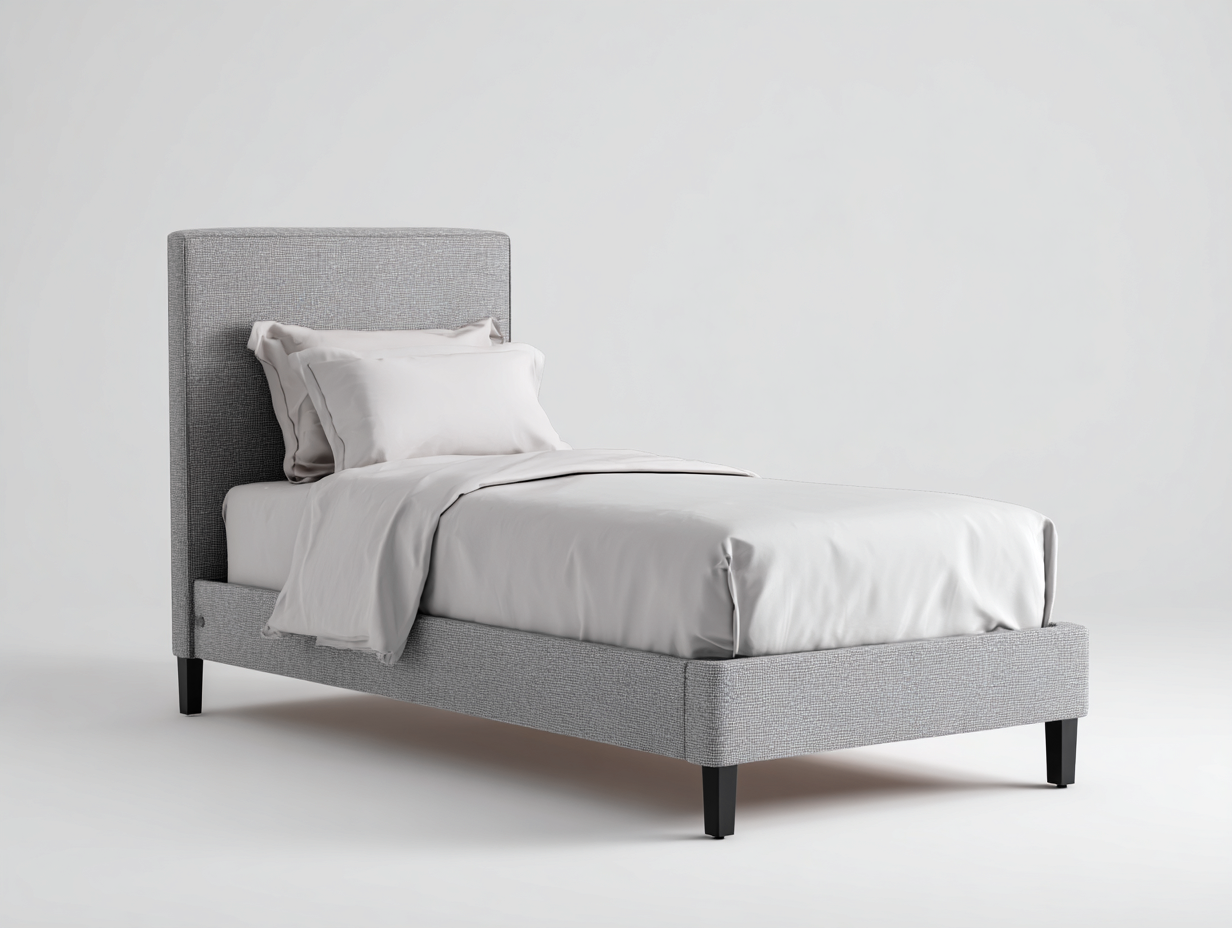 Cama individual tapizada en tela 205x98x115 cm - gris claro - diseño sencillo para dormitorio