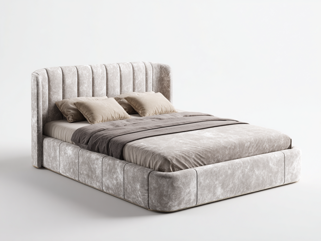 Cama doble tapizada en terciopelo 210x168x135 cm - gris - diseño elegante para dormitorio