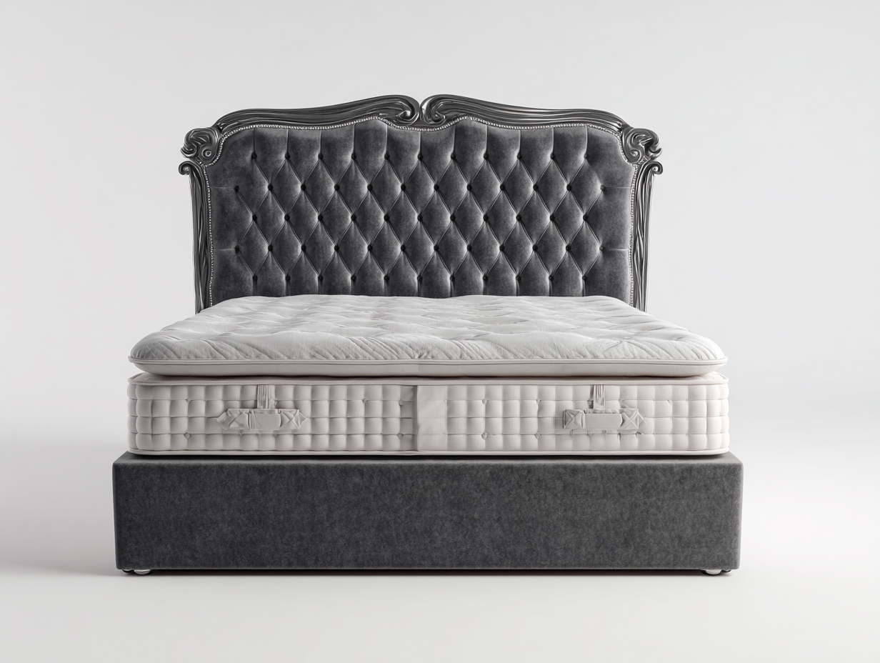 Cama doble con cabecero tapizado capitoné 200x160x120 cm - gris - estilo clásico y descanso confortable