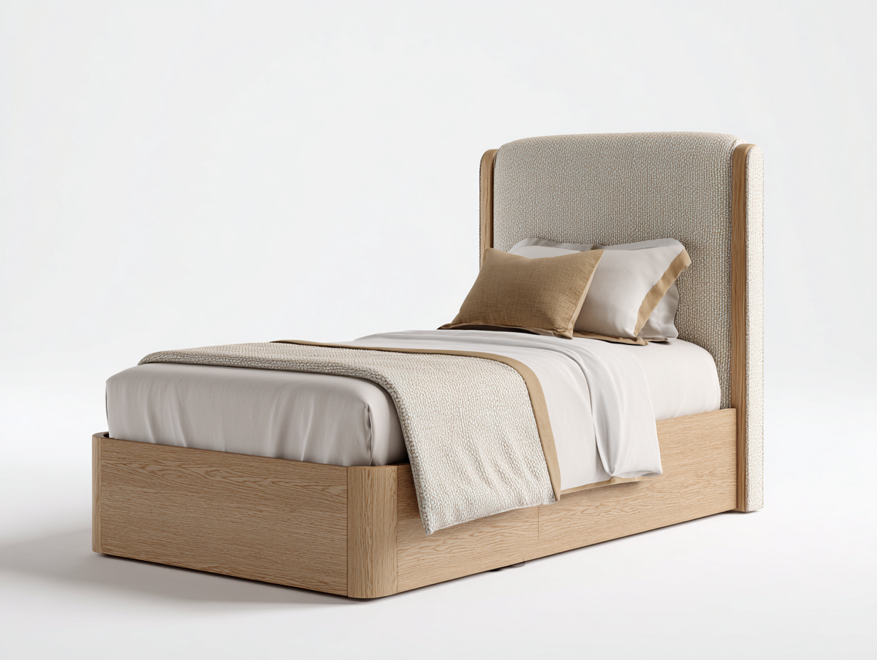 Cama individual tapizada con cabecero curvo 200x90x115 cm - beige - estilo contemporáneo para dormitorio