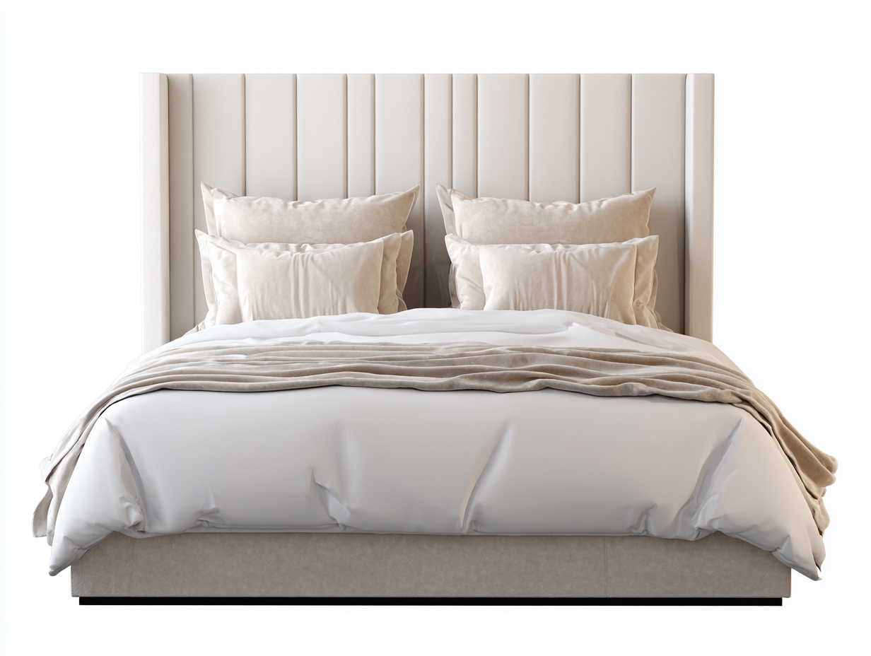 Cama doble tapizada en tela 200x160x110 cm - beige - diseño moderno para dormitorio