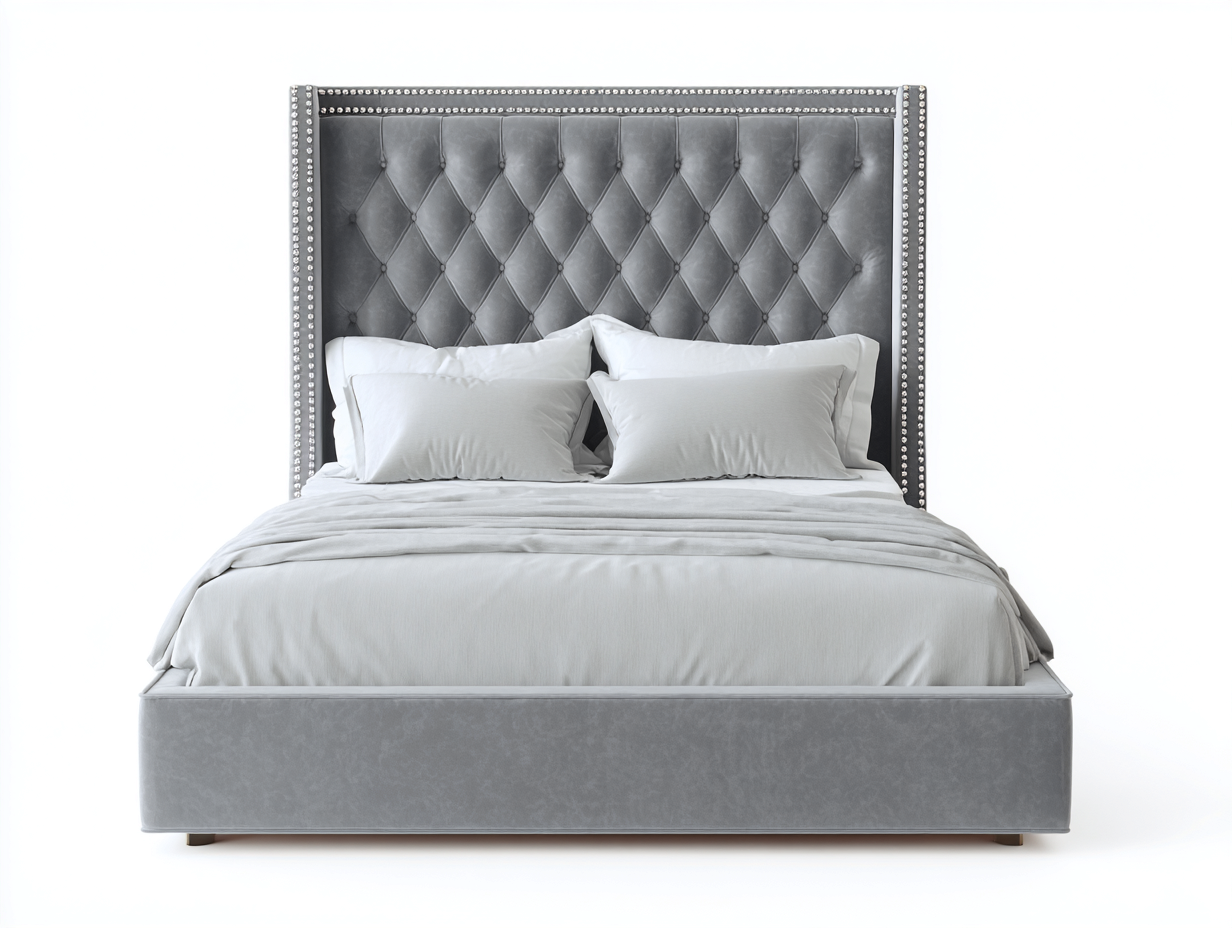 Cama doble tapizada con cabecero capitoné 200x160x135 cm - gris - diseño elegante para dormitorio