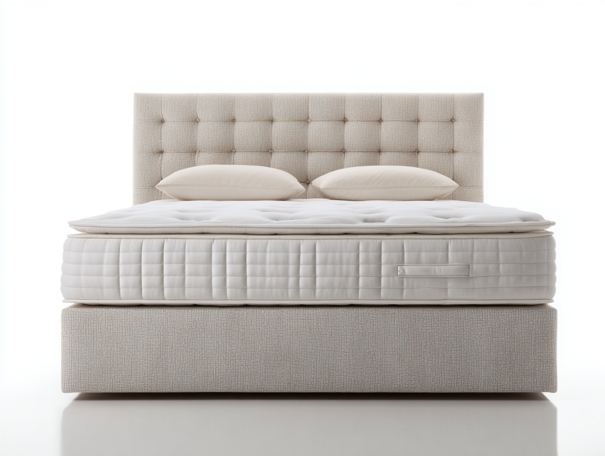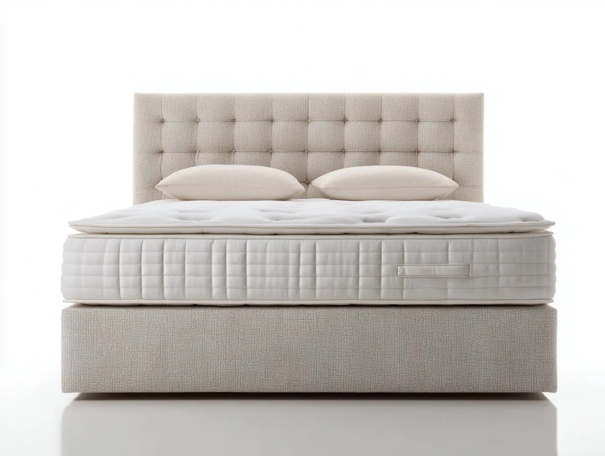 Cama doble tapizada en tela 200x160x110 cm - beige - diseño moderno para dormitorio