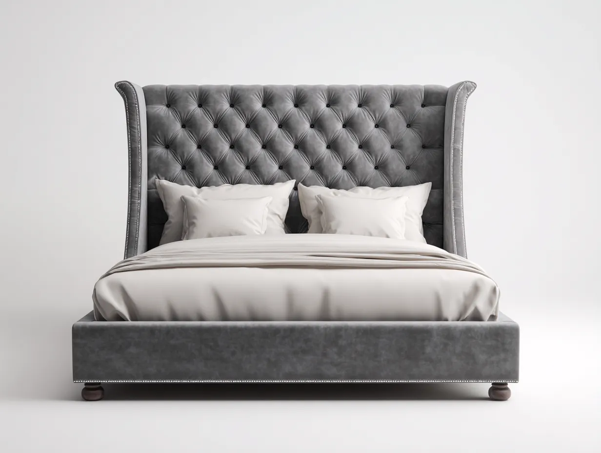 Cama doble tapizada en terciopelo 210x168x135 cm - gris - diseño elegante para dormitorio