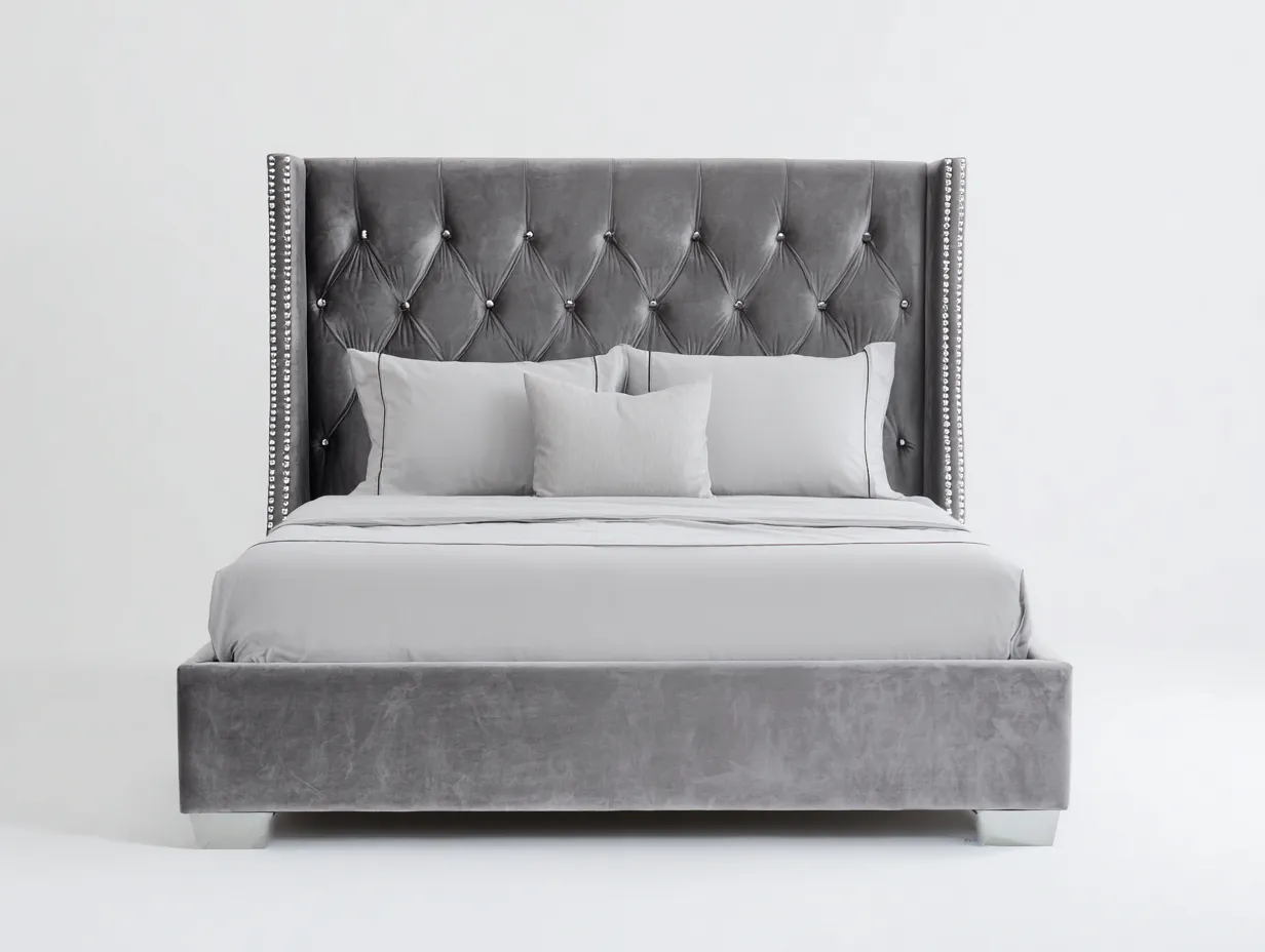 Cama doble tapizada en terciopelo 212x170x138 cm - gris - diseño elegante para dormitorio