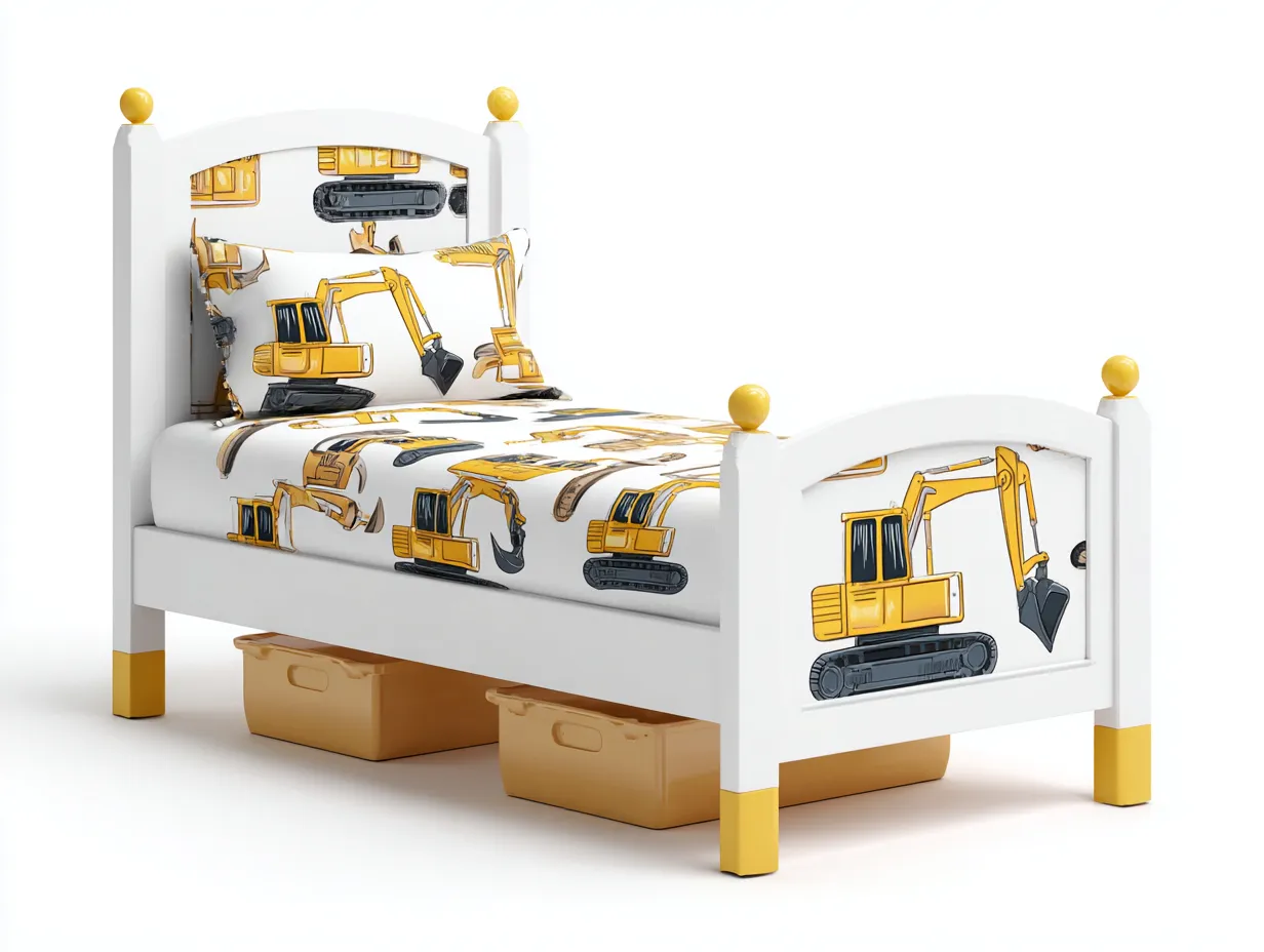 Cama individual de madera 190x90x80 cm - blanco-amarillo - diseño moderno para dormitorio