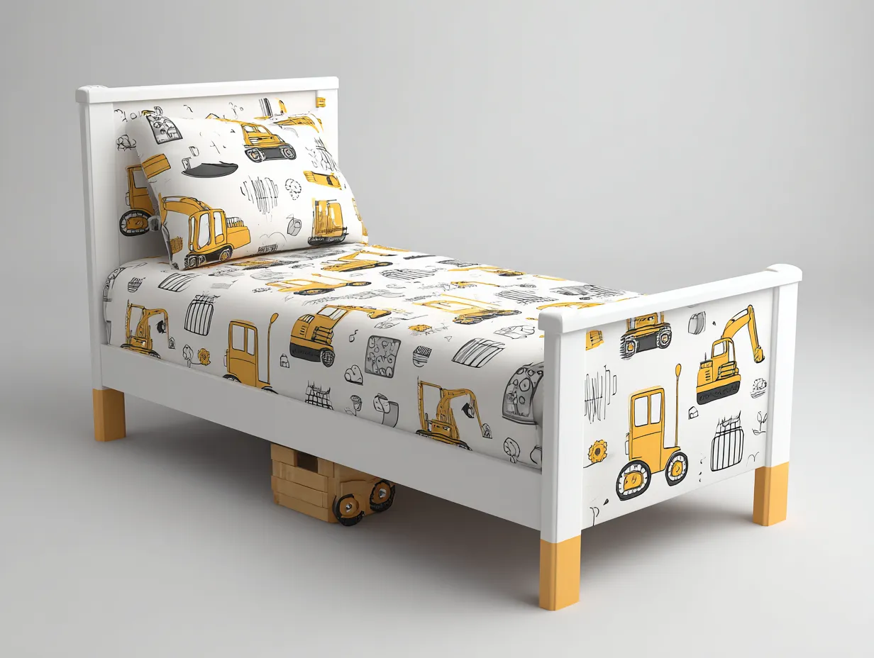 Cama individual de madera con diseño ilustrado 190x90x80 cm - blanco y amarillo - estilo moderno para dormitorio
