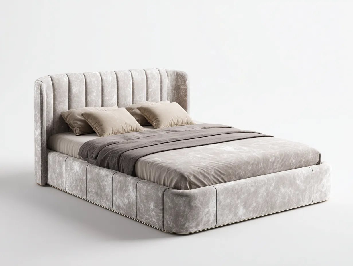 Camas dobles tapizada en tela acolchada 200x160x110 cm - gris claro - diseño moderno para dormitorio
