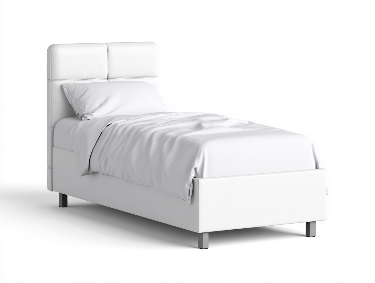 Camas individuales tapizada en cuero sintético 200x90x110 cm - blanco - diseño minimalista para dormitorio