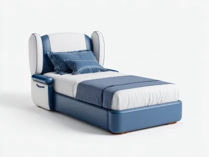 Camas individuales tapizada en cuero sintético acolchado 200x90x110 cm - azul y blanco - diseño moderno para dormitorio